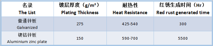 鍍鋁鋅板的耐熱性大大優(yōu)于普通鍍鋅板,幾乎等同于鍍鋁板。