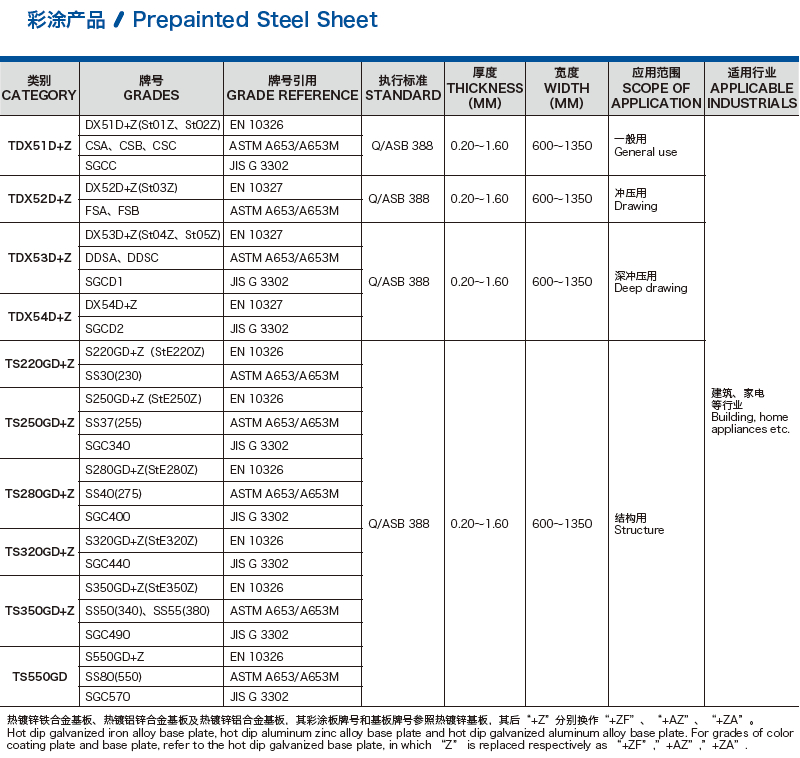 板厚0.17-1.2 mm,寬度600-1250 mm,鍍層量